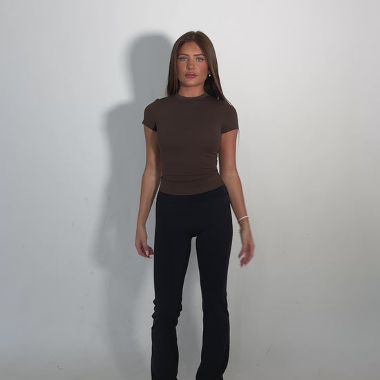 A sculpting short sleeve top designed to contour your waist and flatter your figure. Made from our signature second-skin fabric, this top moves with your body while giving a smooth, snatched